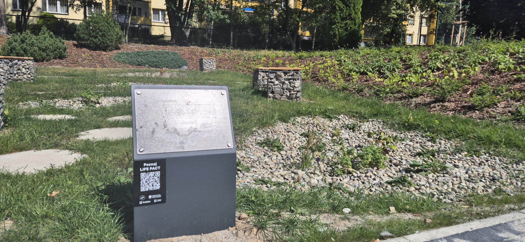 Realizacja projektu LIFE PACT na terenie Szkoły Podstawowej nr 2 przy ul. Strzelców w Krakowie przyczyniła się do stworzenia wielofunkcyjnej, przyjaznej przestrzeni edukacyjno-rekreacyjnej, która równocześnie pełni funkcję adaptacyjną w obliczu zmian klimatu. Dzięki budowie ogrodów deszczowych o łącznej powierzchni 11,26 m² i pojemności 3,41 m³ możliwe jest zatrzymywanie, oczyszczanie i stopniowe oddawanie wód opadowych do gruntu, co ogranicza ryzyko lokalnych podtopień i poprawia mikroklimat na terenie szkoły. W ramach inwestycji posadzono 6 drzew, 175 krzewów oraz 1430 bylin, dobierając gatunki odporne na warunki miejskie i sprzyjające bioróżnorodności, co wzbogaciło przestrzeń o nowe wartości przyrodnicze i estetyczne.